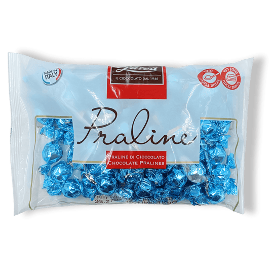 Shiny Sky Blue Chocolate Praline with Hazelnut Cream Filling